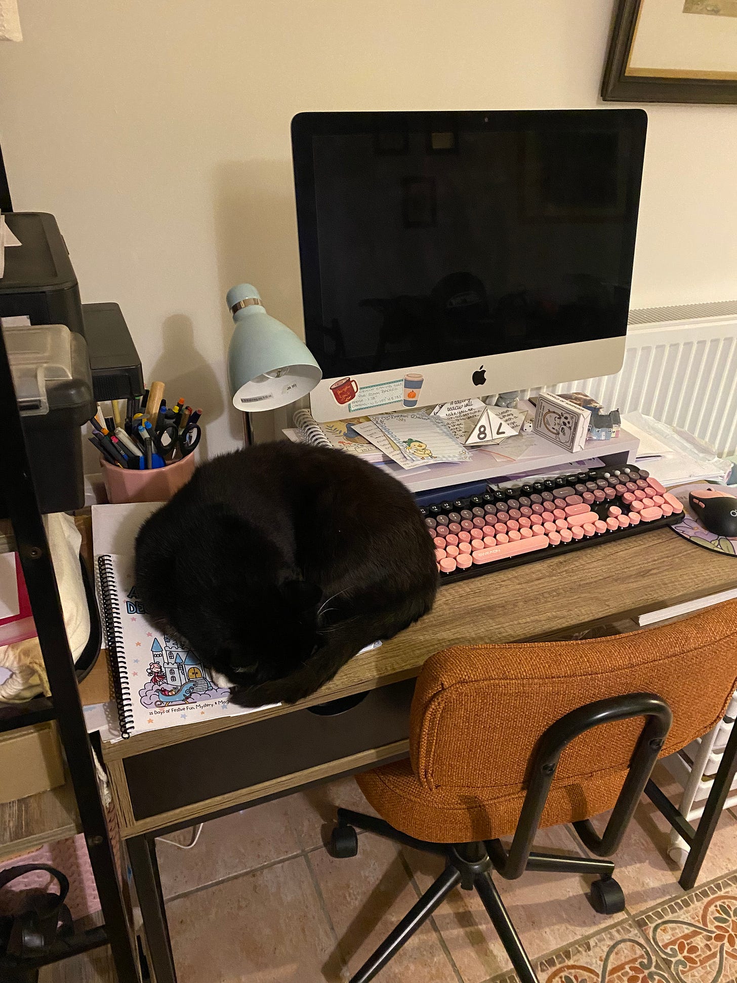 Recently, I rediscovered the Bored Bucket, packed away in a basket full of long-forgotten games. And it got me thinking about creating a new, more challenging version. So, instead of a bored bucket, we now have “Bored Buttons”! I’m quite excited by these; there is a lovely mix of challenges, as well as physical and creative activities. They are currently at the pre-production phase, with all the design work done. Unfortunately, my cat has decided that for this month at least, the spare space on my desk is his new bed, and taking up what little space I have available to “craft”! These will have to wait until he decides to move on elsewhere.